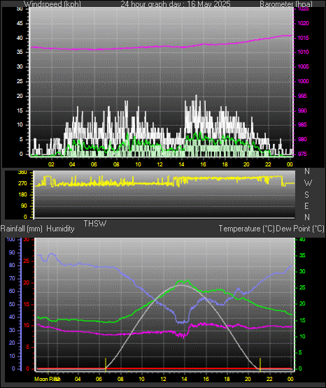 | Maximum gust speed | 18.5 km/h from 288°(WNW) on 05 at 16:56 |